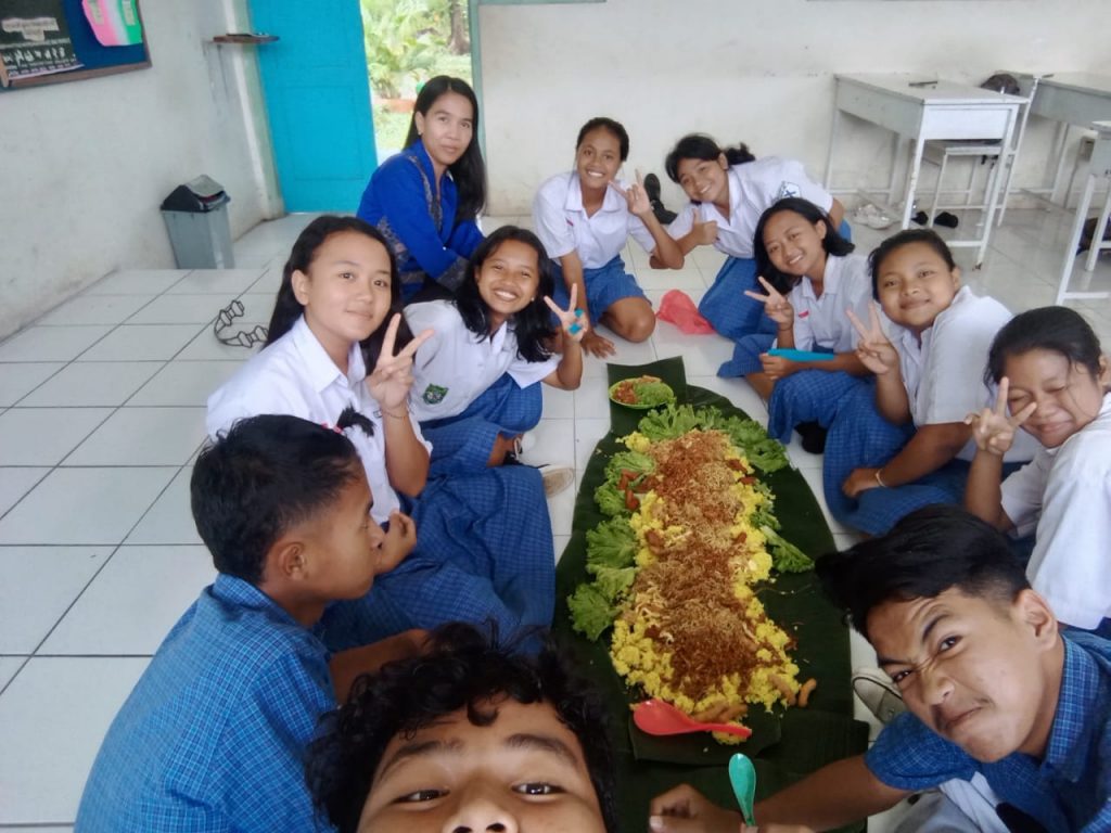Kebersamaan yang baru beberapa bulan tapi serasa sudah bertahun-tahun, mereka merayakan dengan acara makan bersama didalam kelas. Dengan membawa makanan apa yang mereka punyai dirumah, tentunya tanpa paksaan dan didasari rasa keikhlasan untuk disantap bersama di jam istirahat demi untuk sebuah KEBERSAMAAN ☺️